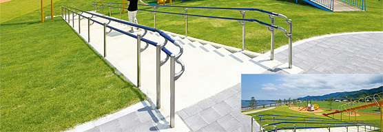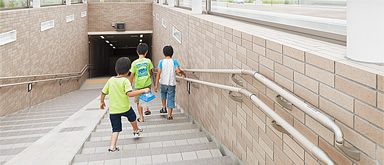 また、手すりの副次的な機能として、ガイドラインとしての役割もあると思います。カラーユニバーサルデザインを配慮したことで、より多くの人が手すりを認知しやすく方向性も示せるのでガイド効果もあると思われます。階段においては混雑時の階段昇降で階段そのものが