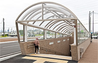 また、手を添えておくだけ、摺りながら移動するときは円断面の手すりと同じでスムーズに使え、円断面の手すりより手に自然にフィットする点有利であると思われます。多種類の手すりを見てきましたが、この卵形断面の手すりは個人的には十分良い評価をしたいと思います。