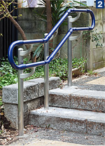 手すりの使用か、杖で昇降するかを判断すると思われます。卵形断面の手すりは握ったときに自然にフィットするのでその分評価が高くなると思われます。