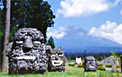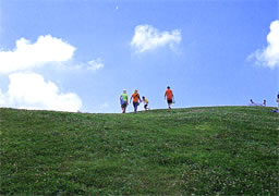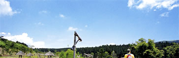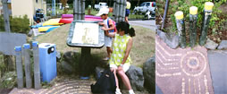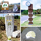 聴覚に対してはサインを配置した場所に合わせて風鈴を取りつけている。 これらのサインとともに休息のためのベンチや木陰を配置し、歩行者ルート上の小広場(塚サイン)をつくっている。ここではみんなが同等に情報を得ることができ、地域を特色づける草花や溶岩に正・われるように配置し、休憩しながら自然の要素と触れ合うことができるなど、園内のユニバーサルデザインの要素を集合させた場所となっている。