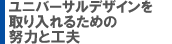 触覚に対しては案内、誘導に使用しているサインのピクト、矢印、現在地表示等すべてに触知可能な凹凸をつけている。触って想像する楽しさを生み出すために点字による表示は補助的なものとして位置づけた。