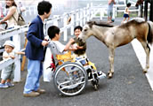 ユニバーサルデザインの具体的な展開については特に案内、誘導のためのサインについて「こどもの国」独自のデザインを行っている。独自のデザインとは視覚、触覚、聴覚各々の感覚によって案内、誘導が可能であるとともに個別の施設がこどもの国にふさわしい形態、素材であることである。独自のものとはいっても機能しないものでは意味がないので案内、誘導施設などの満たすべき要件について県内の福祉施設へのヒアリング、専門家のアドバイスをもらいながら設計を進めた。
