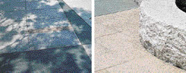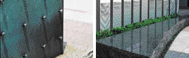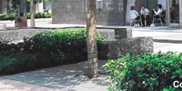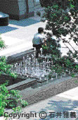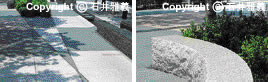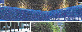 蔵跡は「座のオブジェ」の一つとしてよみがえり、また敷地から発掘された掘割に使われたと見られる間知石や土台として使われていた石は、それなりの時の風情を今に残す、 |